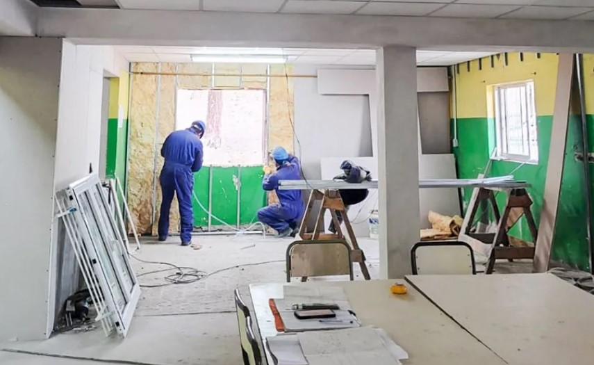 Del mismo modo, en la escuela primaria N° 306 de Nahuel Mapi Arriba, en la que ya se terminó la obra de ampliación con una inversión de 59 millones de pesos, se trabaja ahora en la mejora sobre 125 metros cuadrados de la superficie cubierta del edificio original. Allí se interviene con el reemplazo de la estructura del techo por una nueva, la reparación del revestimiento de piedra exterior en el contrafrente del edificio, el cambio de aberturas por ventanas de aluminio DVH con paño fijo y brazo de empuje de modo de garantizar la hermeticidad de edificio. Además, se procederá con el cambio de toda la instalación eléctrica, la remodelación en sectores de la cocina y con trabajos de pintura interior y exterior integral de todo el edificio.