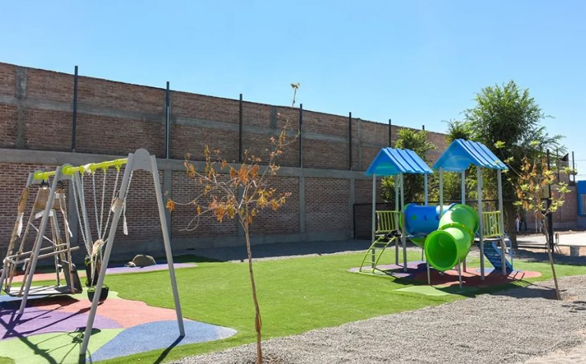 También se procedió a las adecuaciones de pluviales, de baños docentes y a la construcción de tres sanitarios nuevos. Se construyeron nuevas veredas perimetrales con accesibilidad; y se intervino en el patio de forma integral, con un piso técnico y una plaza seca.
