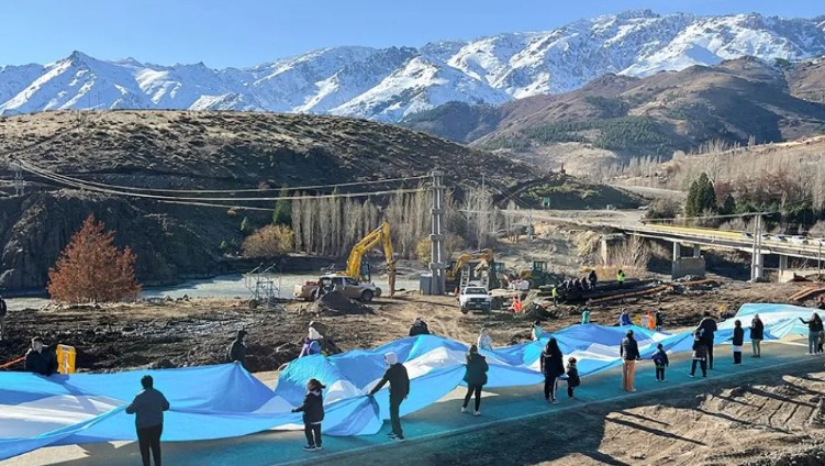 En vísperas del Día de la Bandera, la localidad de Andacollo volvió a convertirse en escenario de una conmovedora muestra de identidad y trabajo colectivo: el despliegue de la bandera más larga de la provincia de Neuquén. Con más de 500 metros de extensión, la enseña nacional recorrió las calles del pueblo y alcanzó el puente sobre el río Neuquén, en una postal cargada de simbolismo y emoción.