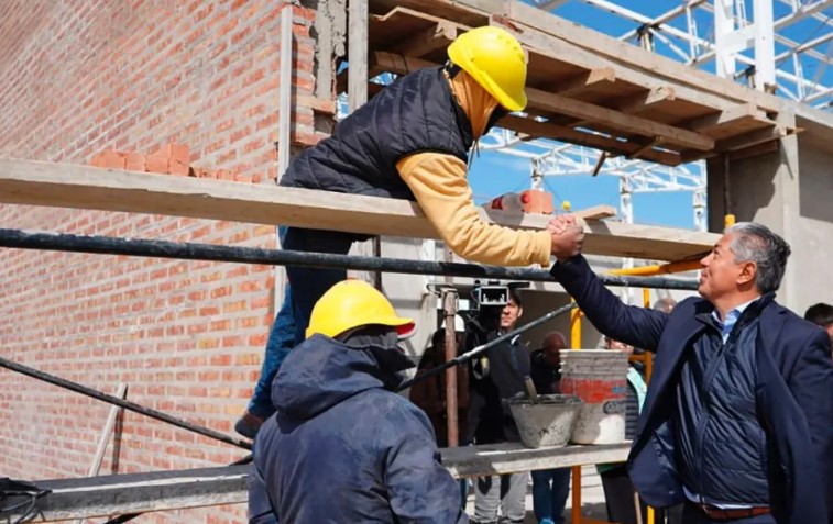 El gobernador Rolando Figueroa y el intendente Lucas Páez encabezaron este miércoles una recorrida de obras por la localidad que incluyó los avances de la nueva escuela primaria que se construye en el barrio Aitue y presenta un 70 por ciento de avance. “