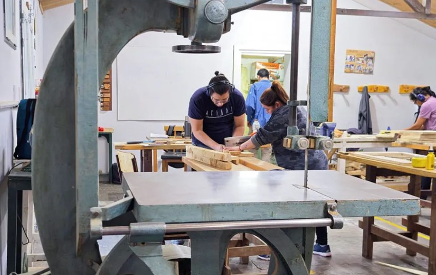 Los referentes de Educación se reunieron con el equipo directivo del CFP 32 de Las Lajas, junto a quienes recorrieron las instalaciones del antiguo hospital reacondicionadas, donde funciona el centro de formación, y evaluaron la readecuación del espacio en el que se dicta carpintería, para poder montar un área de soldadura.